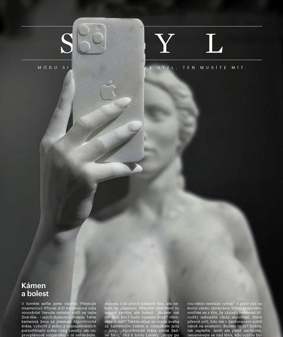 “Today, it’s AI’s algorithms that have God-like power over humanity. They influence beauty standards with the irresistible promise that those who follow will be rewarded by digital engagement disguised as love.”