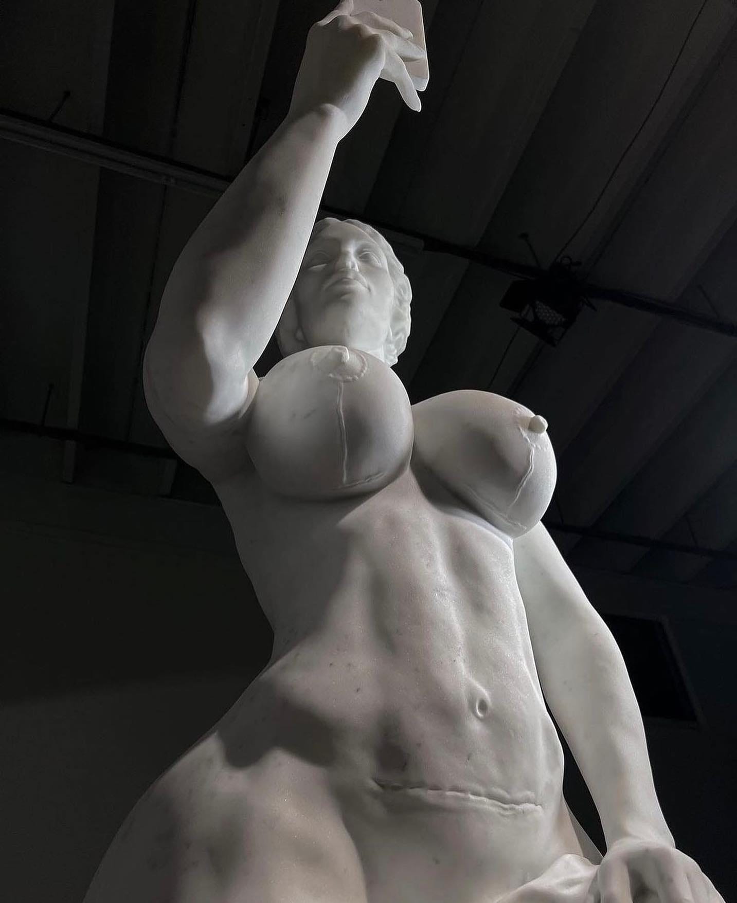 It’s a sly nod to the Venus de Milo, that armless icon from 2,000 years ago symbolizing untouchable perfection. But the artist flips the script:
