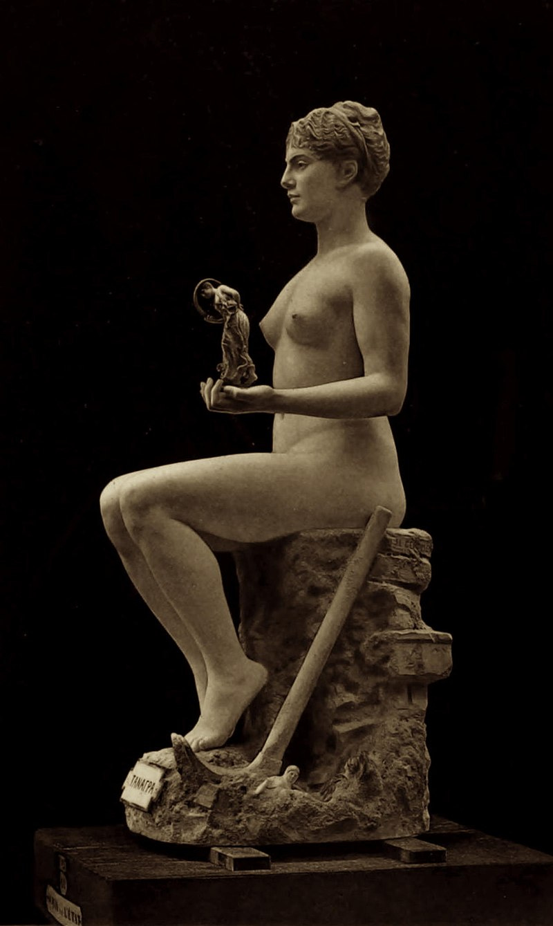 Later in life, Gérôme turned to sculpture, creating works like Tanagra (1890), a delicate figure holding a hoop. He even painted his bronzes for hyper-realism.