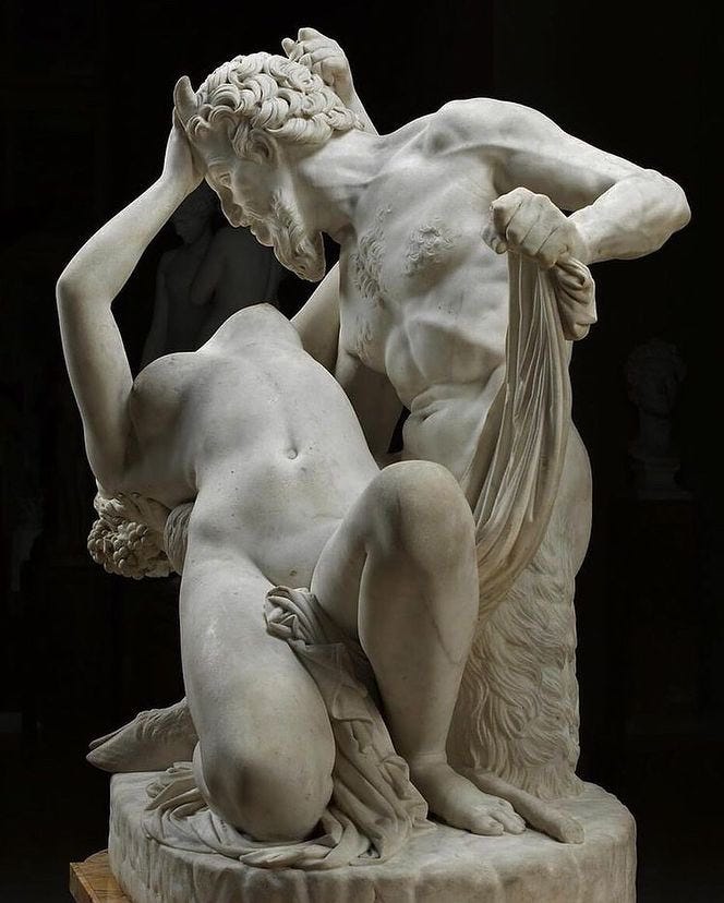 So he took on this ancient theme and turned it into something intensely physical. He started with a plaster model around 1830, then spent four years carving it in marble. He wanted to push the boundary between antiquity and sensuality.