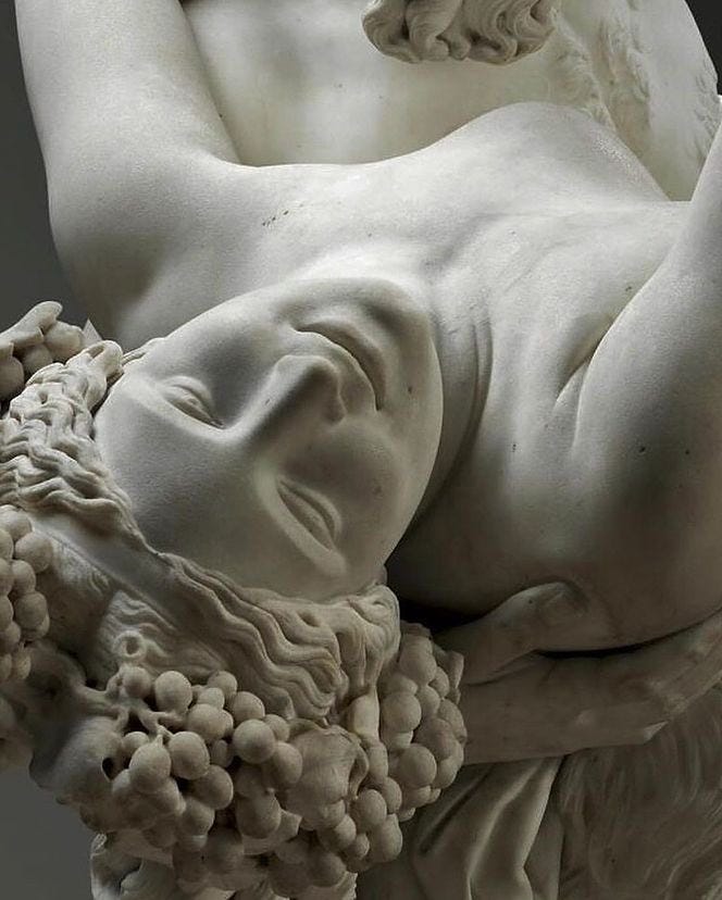 Today it doesn’t shock quite as it did in 1834, but you can still feel the mythic heat, the wildness of Dionysian revelry captured in cold, perfect marble.